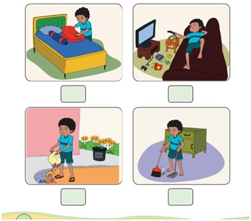 Tentukan mana gambar yang menunjukkan sikap tertib di rumah.